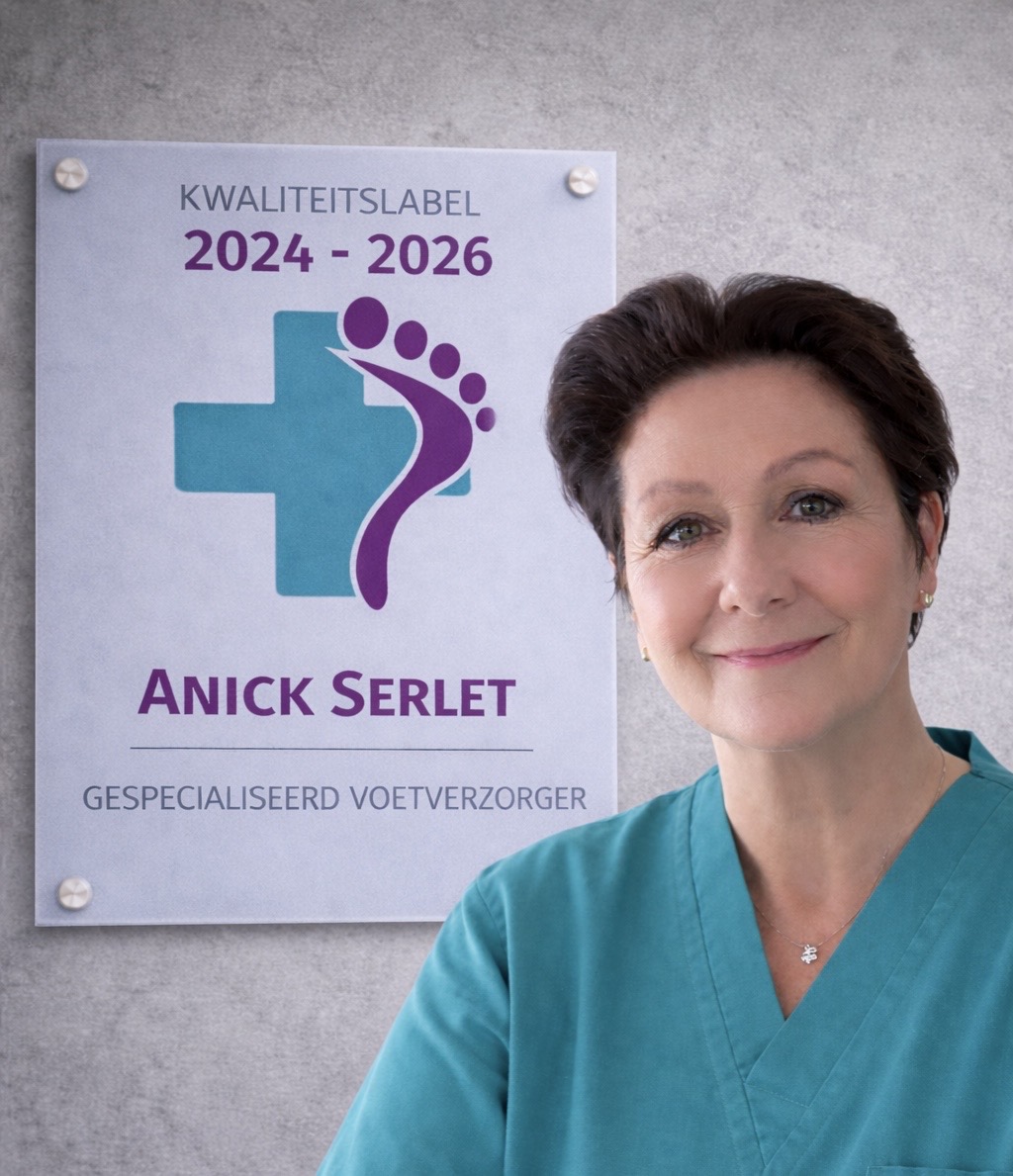 Mijn naam is Anick Serlet. Al meer dan 30 jaar zet ik me met hart en ziel in voor professionele voetzorg. Wat ooit begon als een passie, groeide uit tot een diepgewortelde expertise in het behandelen en verzorgen van voeten, met bijzondere aandacht voor gespecialiseerde voetzorg.